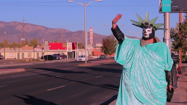 Along a decaying stretch of route 66, roadside visibility and signage became a point of departure for an open-ended outdoor public experiment that took place on a barren Albuquerque lot where the Tradewinds Motel once stood. Amateur volunteers held sign-like props made from scraps of cloth and repurposed embroidery hoops, lined with tiny remote-controlled LED lights. They moved in a loosely choreographed tracing of the floor plan of the motel, that was razed in 2008. Accompanied by a wistful rendition of pep tunes by the street-clothed marching band of the nearby public high school, the dance became an incantation, a revival of the lot’s former, more festive spirit. The dancers spelled out the name of the hotel in semaphore, chanting the name in unison after the last letter had been signaled.